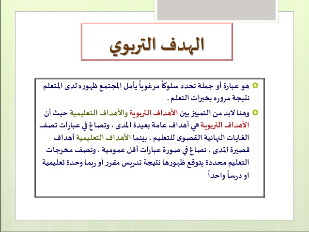 المعلمون فى سطور مجموعة من الاهداف التعليمية للمساعدة فى تحضير الدرس