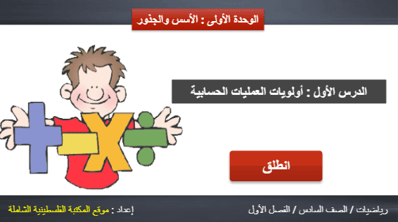 اختبار تفاعلي رياضيات في درس أولويات العمليات الحسابية للصف السادس الفصل الأول المكتبة الفلسطينية الشاملة