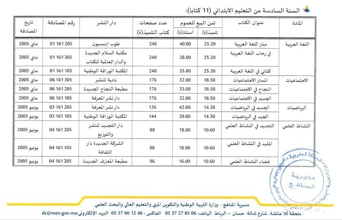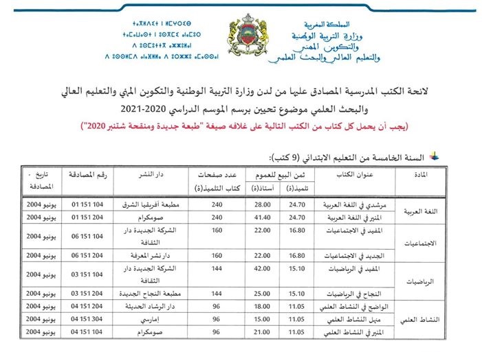 لائحة الكتب المدرسية المصادق عليها من لدن وزارة التربية الوطنية موضوع تحيين برسم الموسم الدراسي 2020 2021