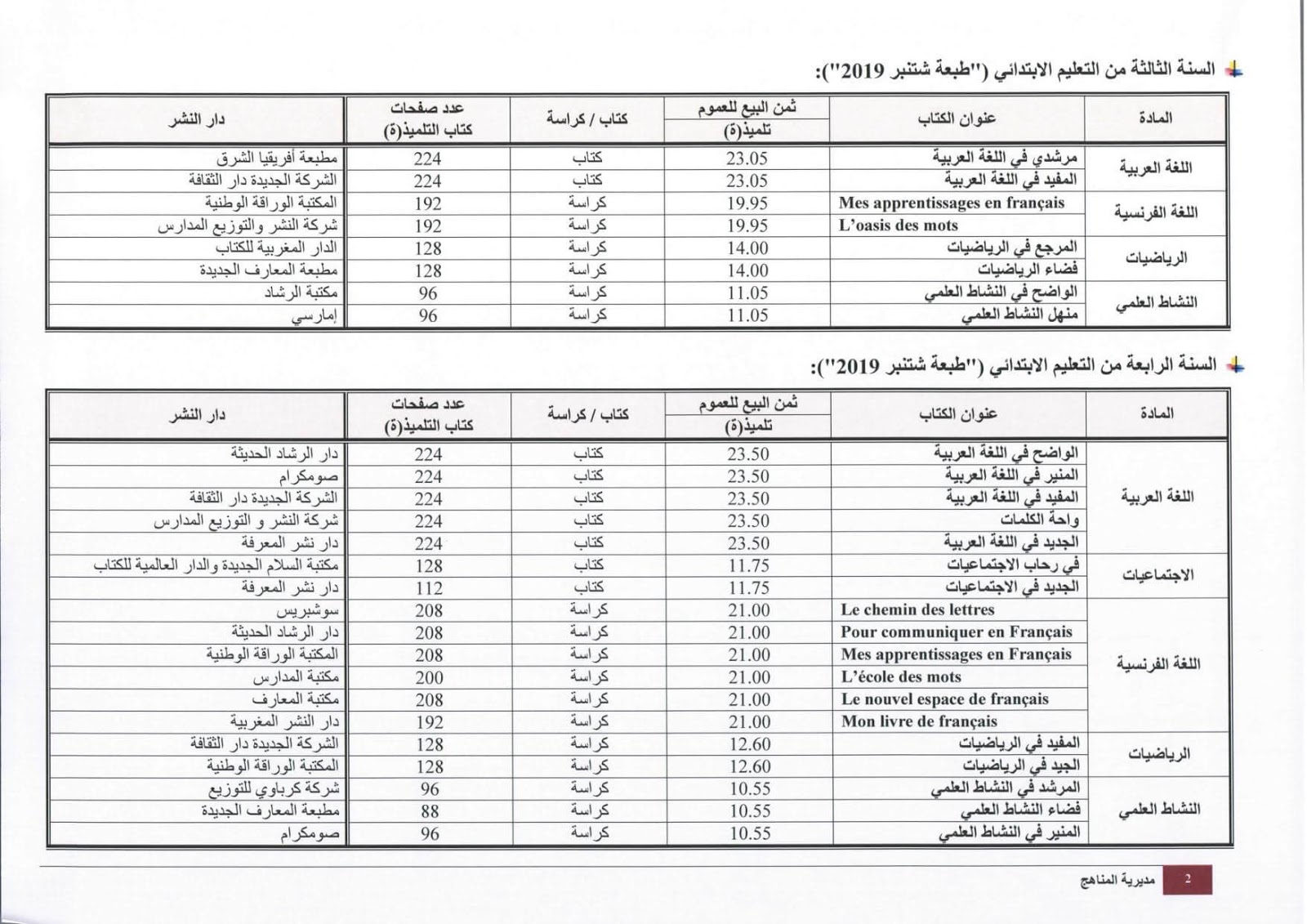 لائحة الكتب المدرسية موضوع التحيين برسم الموسم الدراسي 2019 2020