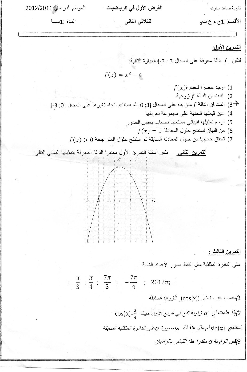 الموقع الاول للتعليم في الجزائر الفرض الأول للفصل الأول في مادة الرياضيات مع التصحيح للسنة الأولى ثانوي جذع مشترك علوم وتكنولوجيا