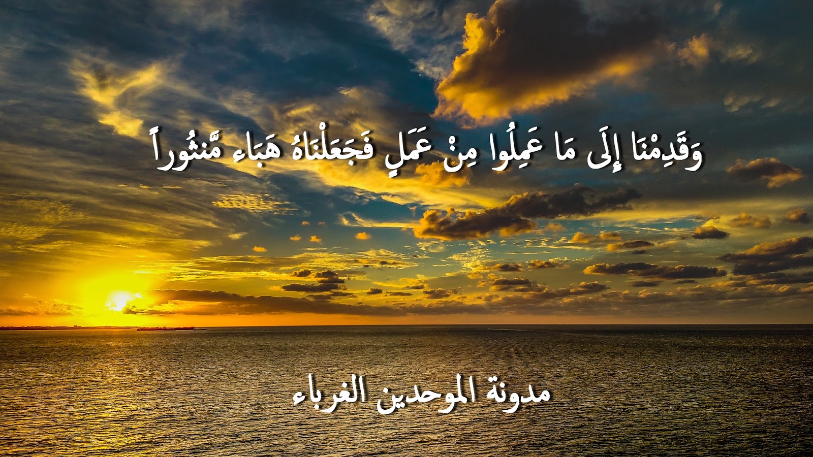 مدونة الموحدين الغرباء و ق د م ن ا إ ل ى م ا ع م ل وا م ن ع م ل ف ج ع ل ن اه ه ب اء م نث ورا