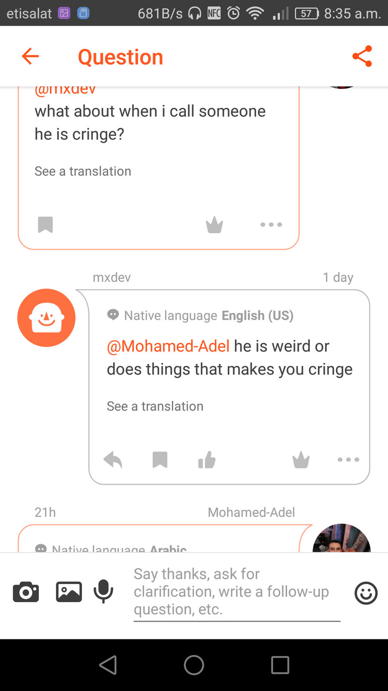 إش يعني Cringe اعرف متى استخدمها لكن ما اعرف معناها بالعربي Hinative