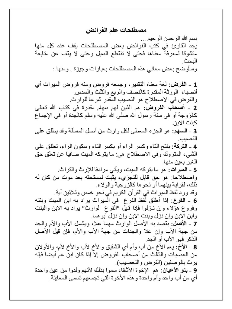 مصطلحات علم الفرائض Docx